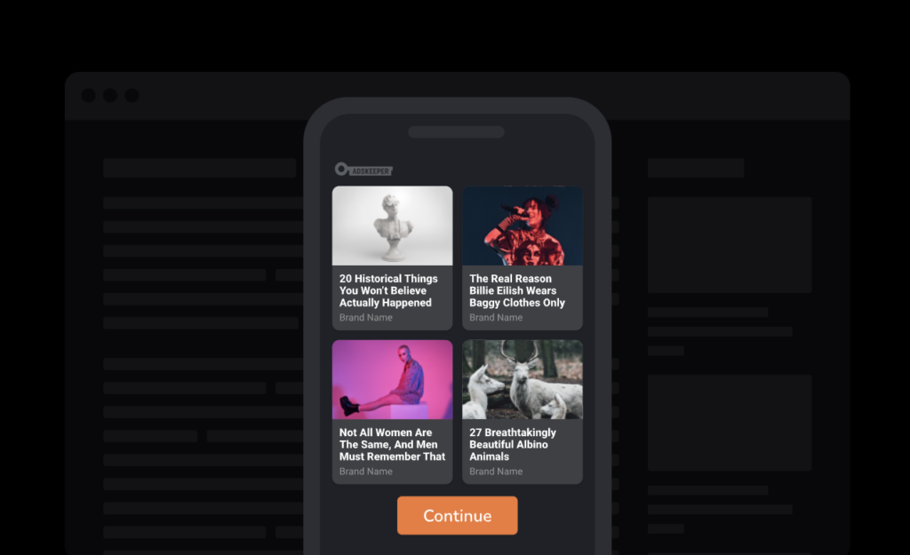 Adskeeper – це платформа нативної реклами, що фокусується на трафіку преміум якості для performance та affiliate маркетингу. Рекламна мережа має велику кількість паблішерів, що дозволяє генерувати більше 18 мільярдів показів на місяць.