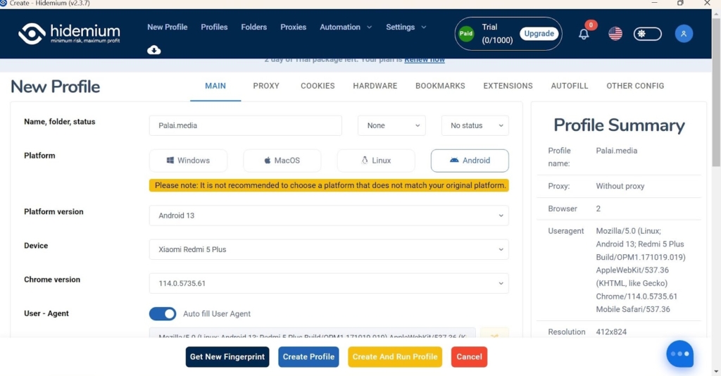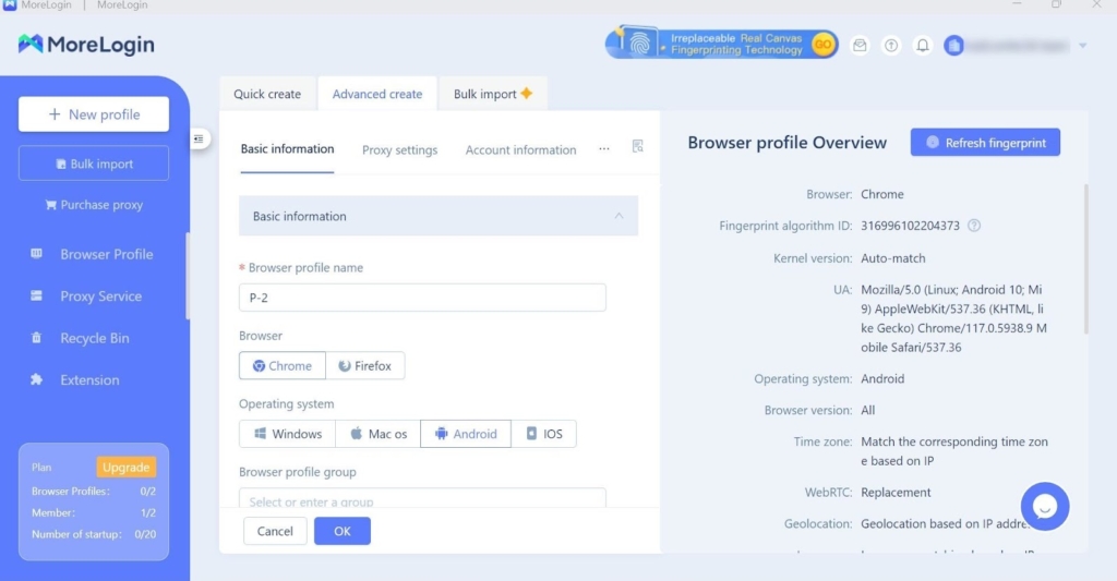 Антидетект-браузер дає можливість точечно налаштувати параметри кожного профіля, створити Android профілі, автоматично заповнювати форми на сайтах. Серед цікавих фішок: керування SSL-відбитками та браузерними плагінами.
