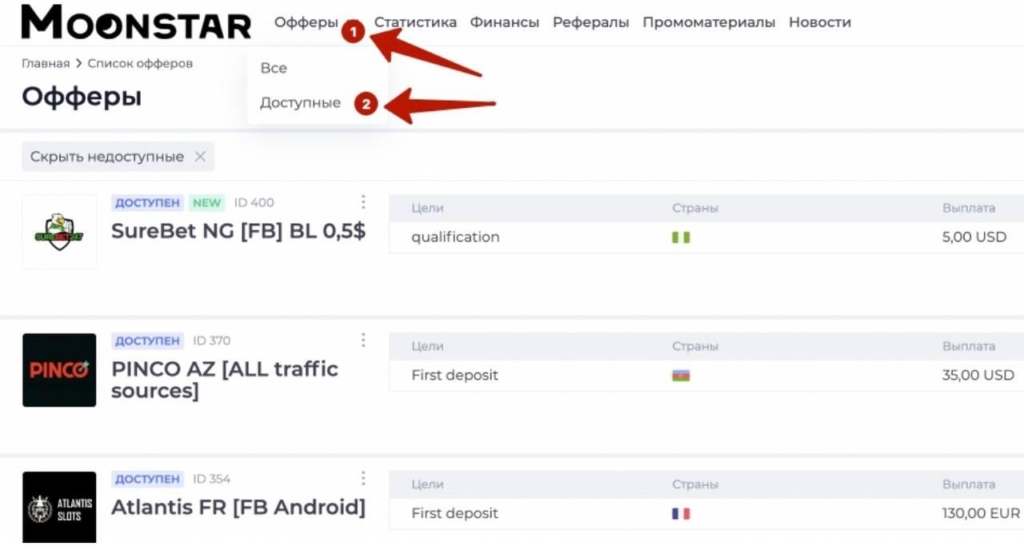 Завдяки цьому арбітражник може зосередитися на тестуванні, а не на пошуках “робочих” оферів. Партнерки зазвичай співпрацюють лише з перевіреними рекламодавцями, що гарантує високу якість оферів. Крім того, ти отримуєш детальну інформацію про офер: доступні гео, конверсійні шляхи, середній рівень оплати та рекомендації для запуску.
