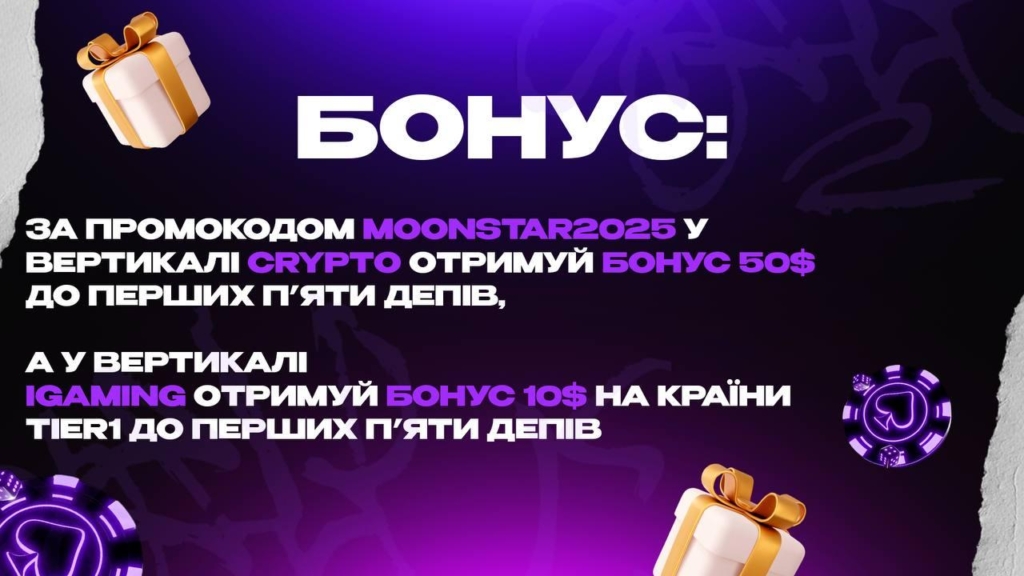У нашій партнерці Moonstar нові арбітражники отримують спеціальний welcome-бонус:
