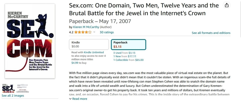 Ще один цікавий факт з цього кейсу — Гарі Кремен зареєстрував SEX.com безкоштовно за допомогою Національного наукового фонду, який сплатив рахунок від Network Solutions.