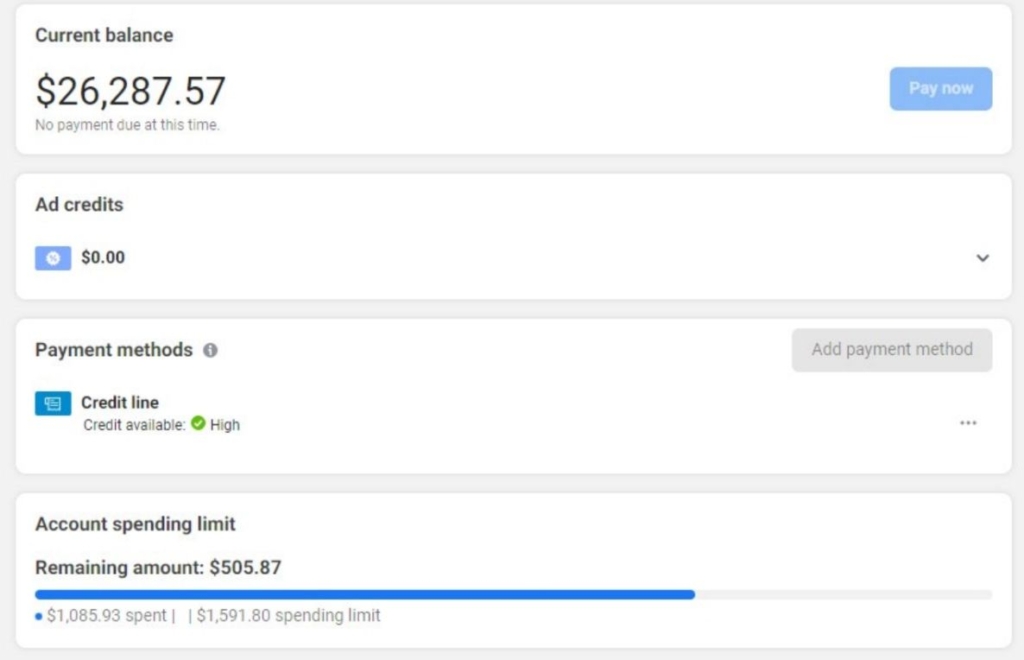 Цікавинка пільгового періоду в тому, що термін безкоштовного відкруту кампаній буде відомий лише по факту. Коли ФБ вважатиме за потрібне, акаунт заблокують до сплати рахунку. Це може статися через 3 дні або через місяць.