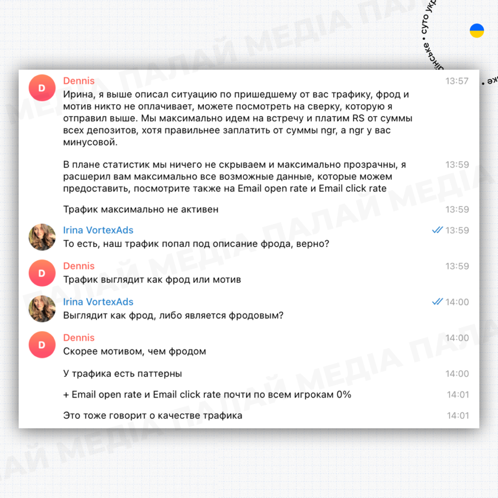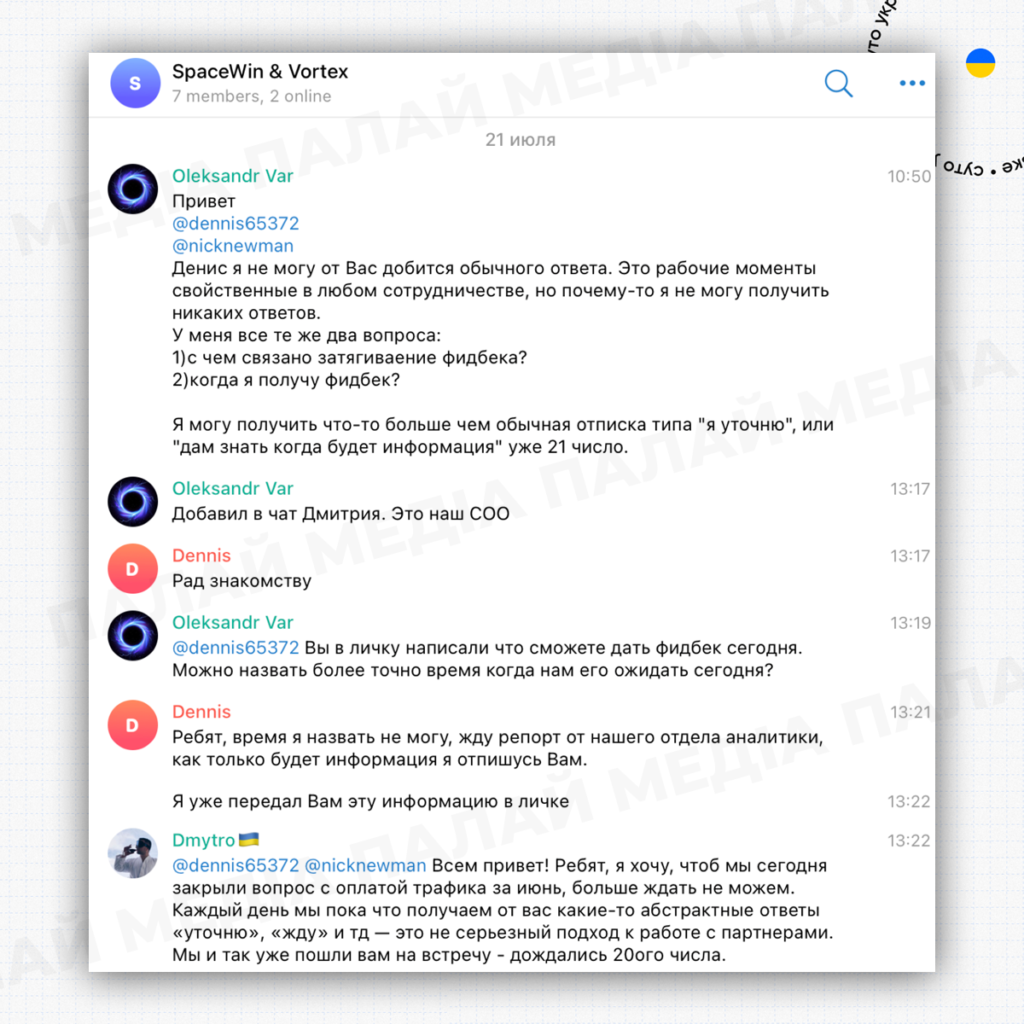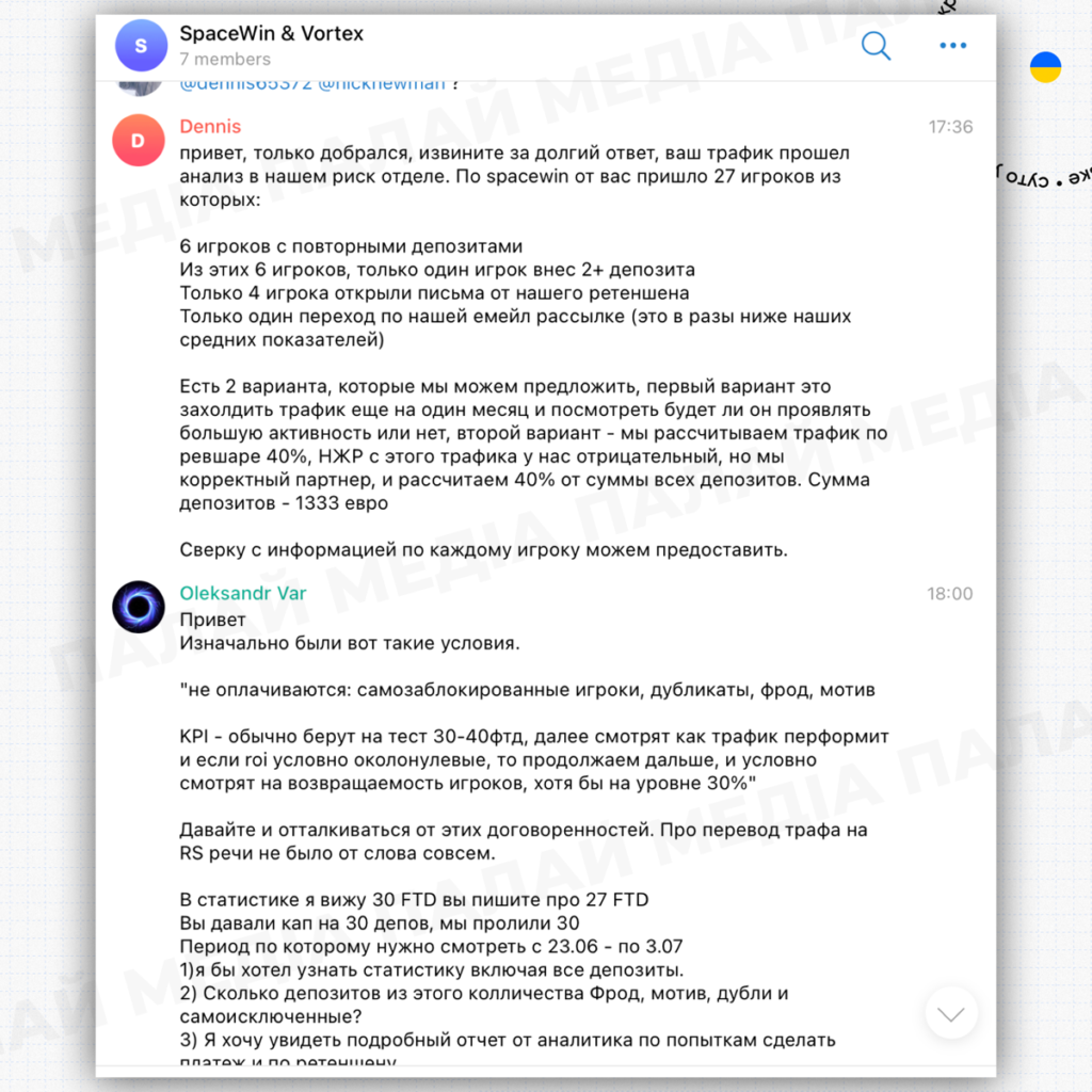 Редакція “Палай” медіа вважає неприйнятним скам будь-яких учасників affiliate-ринку і бажає Vortex якнайскоріше вирішити непорозуміння.