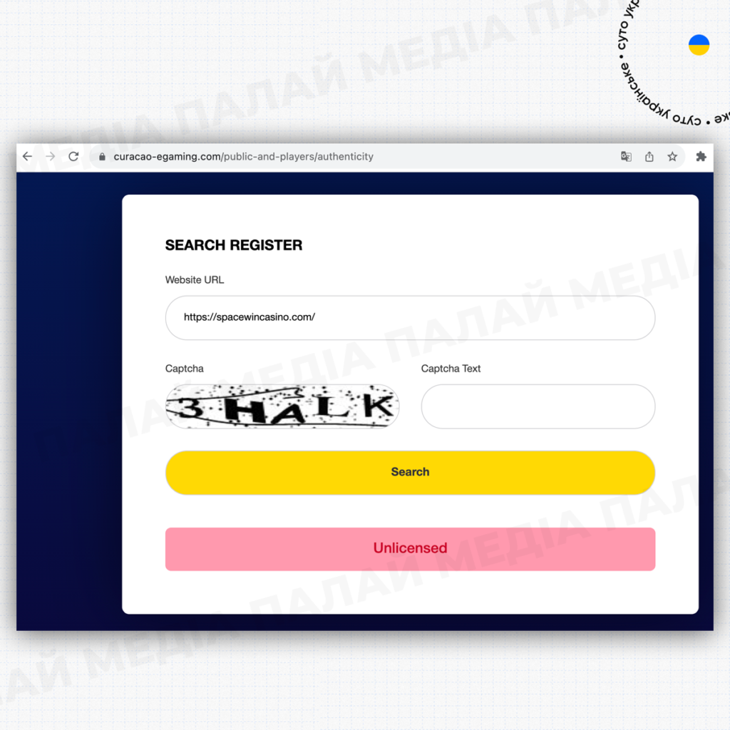 SpaceWinCasino – скам-проект з фейковими ліцензіями, ще і давно не існуючий в реєстрах.
