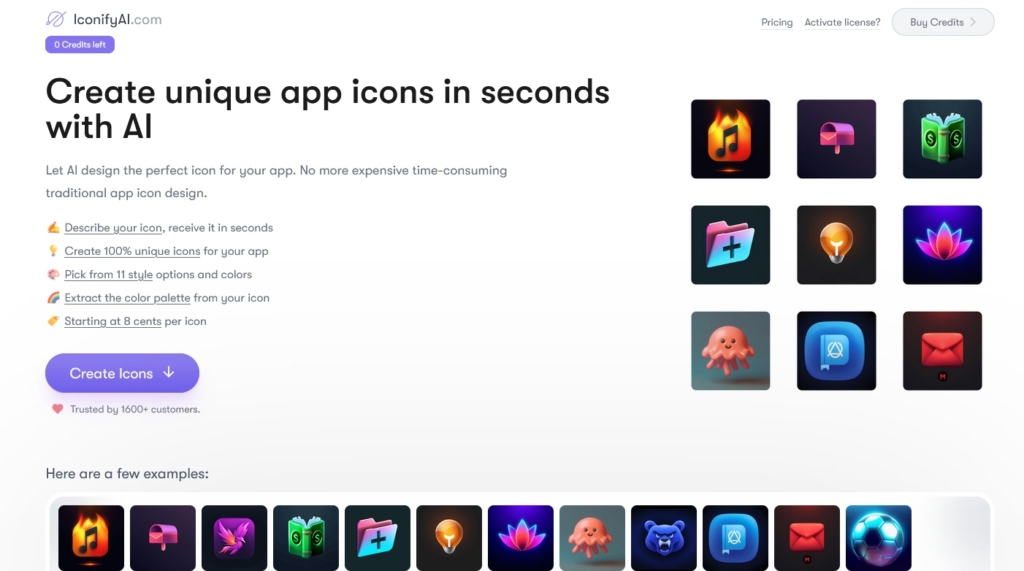 Вартість стартує від $0,21 за іконку, але при оплаті від $40 можна генерувати зображення за 8 центів. Якщо якість медіаконтенту не влаштовує, є можливість повернути гроші.