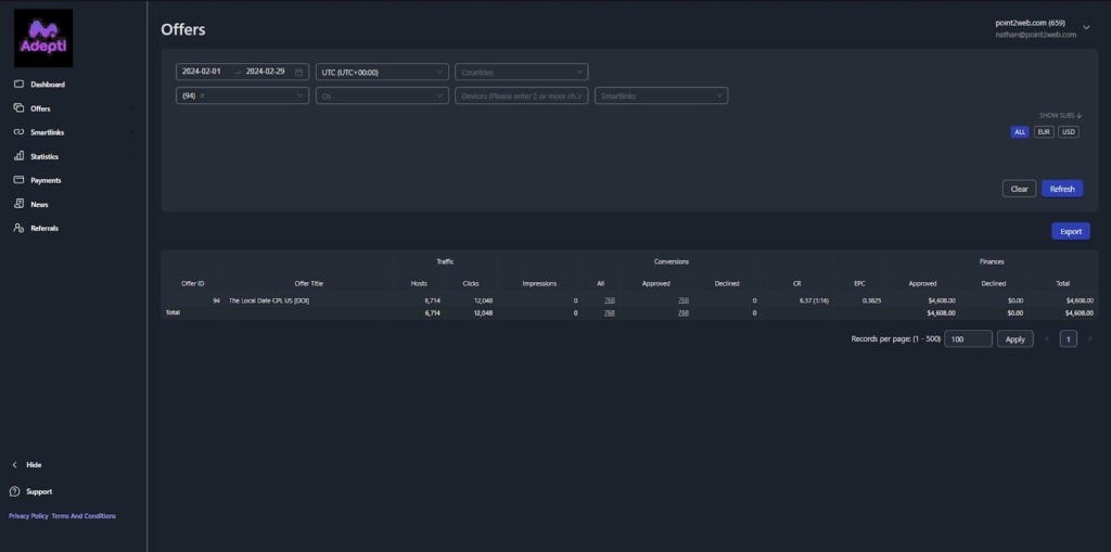 Кейс від афілейтів Adepti протягом періоду з 1 по 29 лютого 2024 року. Лили на офер 94 The Local Date CPL US [DOI].
