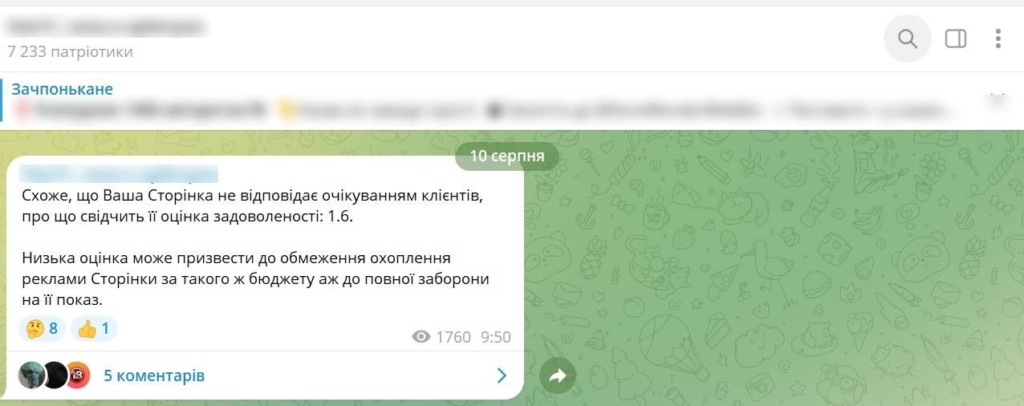В довідці Facebook вказано, що враження клієнтів можуть суттєво вплинути на оцінку сторінки і можливість розміщення реклами. Якщо рекламодавець отримує багато негативних відгуків, показ об’яв можуть обмежити, а охоплення знизиться навіть за умови достатнього бюджету.