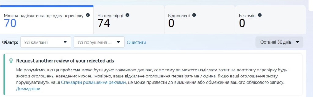 Від редакції додамо, що з апілами треба діяти обережно. Якщо просто заповнювати форму кілька разів і паралельно інші крео полетять у реджект, через деякий час акаунт може вилетіти на полісі.
