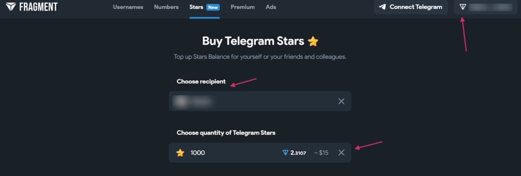 Для оформлення замовлення на зірки треба авторизуватися через будь-який гаманець TON, обрати акаунт і необхідну кількість зірок. Для порівняння 1 000 Stars наразі продають за $15. Сервіс не враховує коливання ціни «Тонів» — вартість зафіксована в доларах.