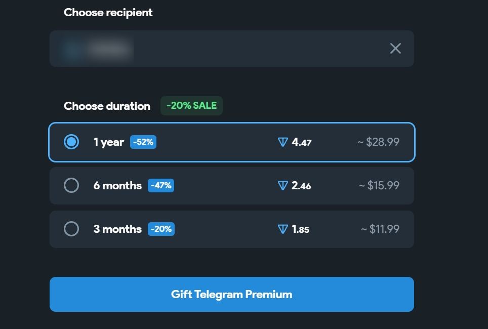 Вартість Telegram Premium на Fragment не відрізняється від десктопної версії месенджера, але зникає необхідність платити фіатом. Можно обміняти USDT на TON і спокійно купити підписку.