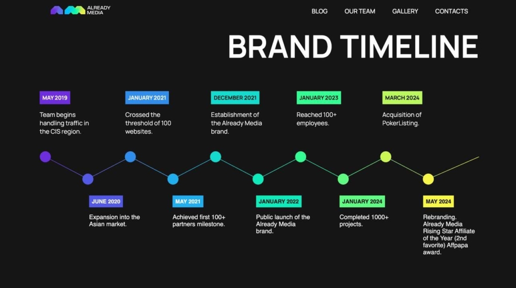 Почну з того, що Already Media — це технологічна affiliate і медіа-компанія, яка спеціалізується на міжнародних ринках iGaming. Наша місія — бути надійним партнером для iGaming-бізнесів, надаючи високоякісний трафік та інноваційні рішення, що сприяють їхньому зростанню і досягненню цілей.