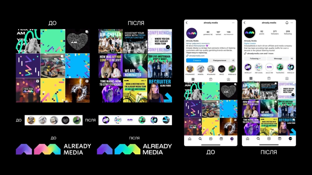 Необхідність ребрендингу стала очевидною, коли ми зрозуміли, що наш попередній імідж не відповідає реальному масштабу досягнень та амбіцій компанії. Саме на цьому етапі я приєдналася до Already Media разом зі своєю невеликою PR командою.