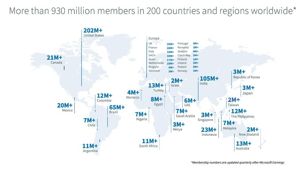 За даними останніх досліджень, аудиторія LinkedIn складає 930 млн. В середньому, щосекунди на сайті реєструється 3 нових користувача. Генеральний директор майданчика планує в майбутньому зібрати аудиторію в 3 млрд.