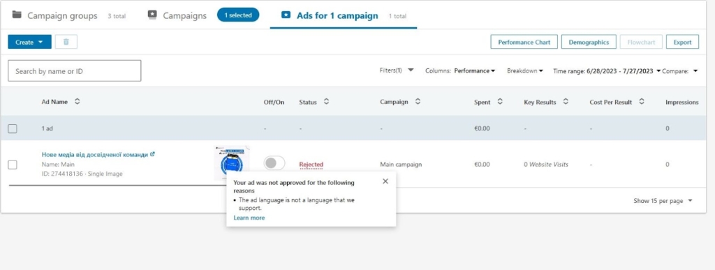 Модерація кампаній та адсетів триває до 24 годин, але зазвичай їх розглядають швидше. В правилах вказано, що є заборона азартних ігор, 18+ контенту та нутри, але, скоріше за все, модератори LinkedIn не зможуть пробити гарно налаштовану клоаку.