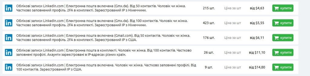 Ще хочемо додати, що для заливу трафіку краще купувати акаунти з віком та базою контактів. Без трасту створити сторінку в LinkedIn не вийде, а вона потрібна для додавання рекламних кампаній. Можна закупатися на маркетплейсах Z2U та AccsMarket.