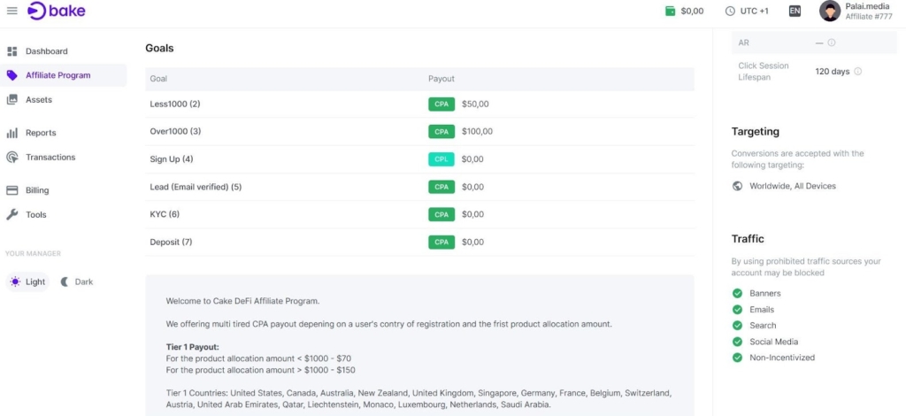 | Cake DeFi | $50-150 CPA | Реєстрація через кабінет платформи, офери доступні без премодерації |