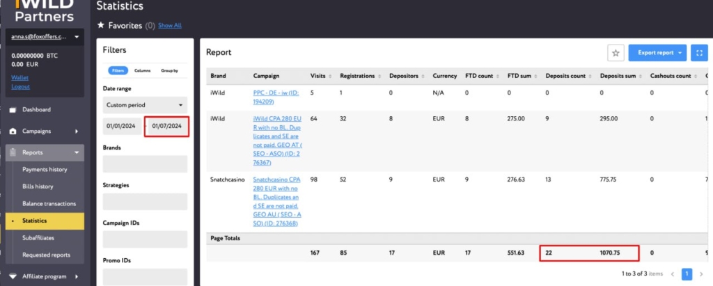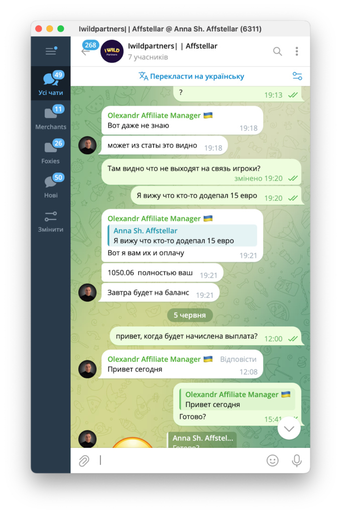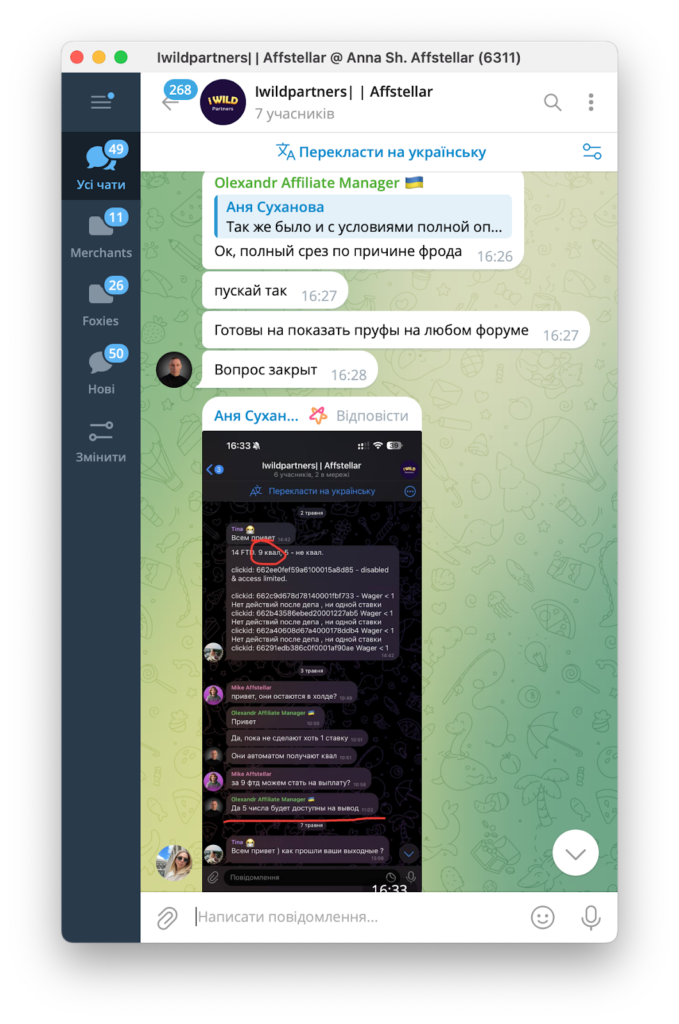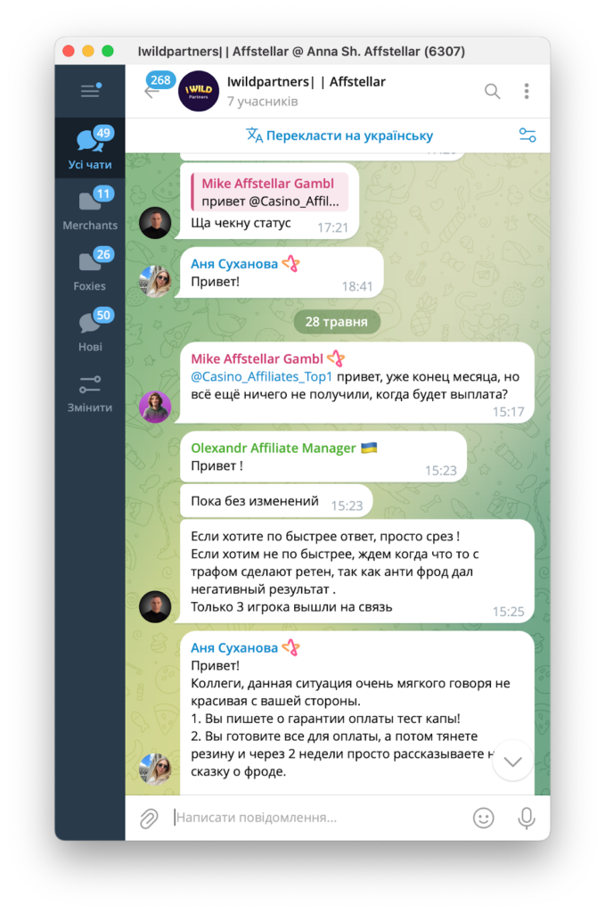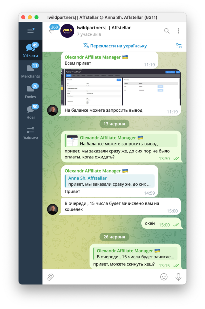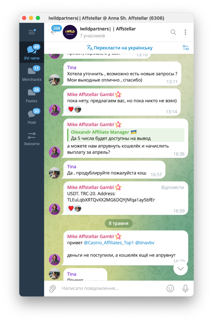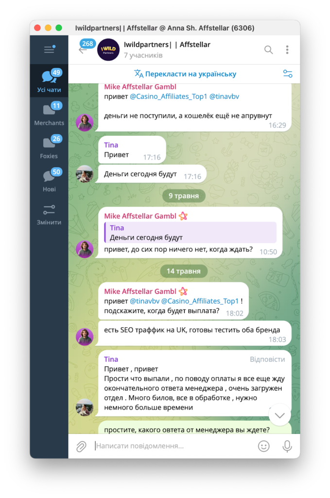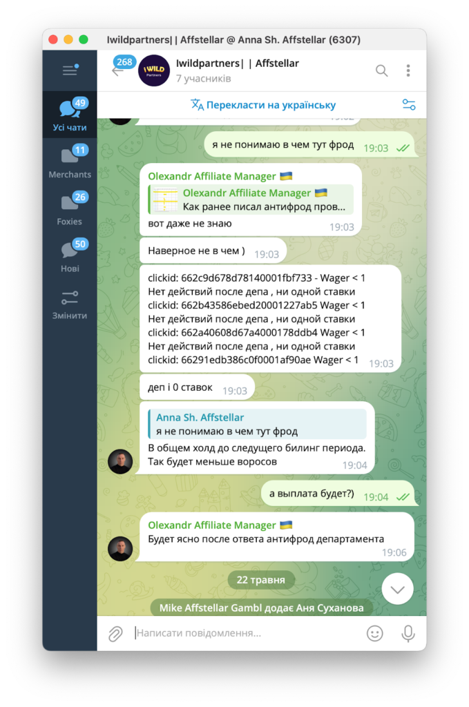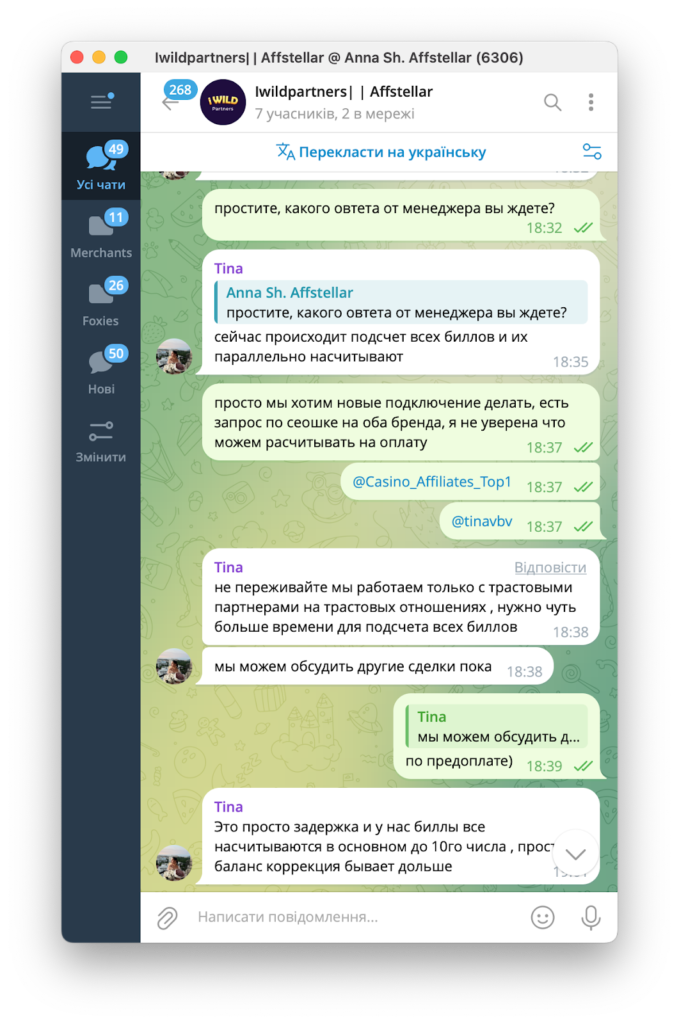 До нас звернулися представники CPA-мережі Affstellar, які повідомили, що їм теж недоплатили за депозити. Як виявилося, це стандартна практика для iWild Partners.
