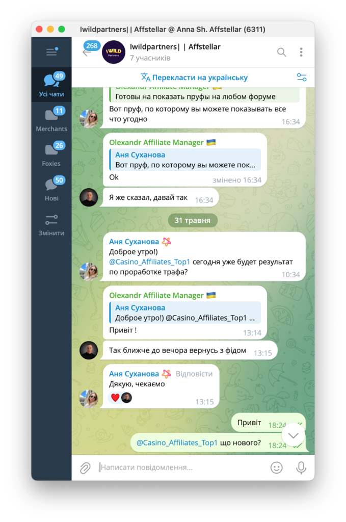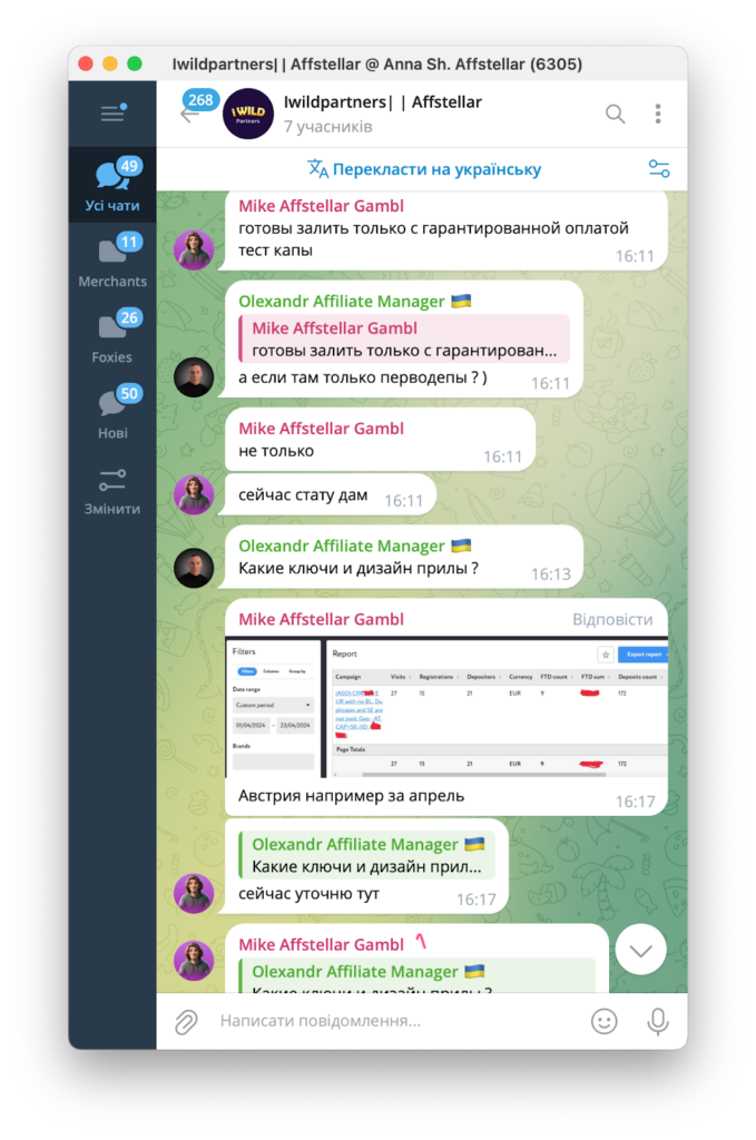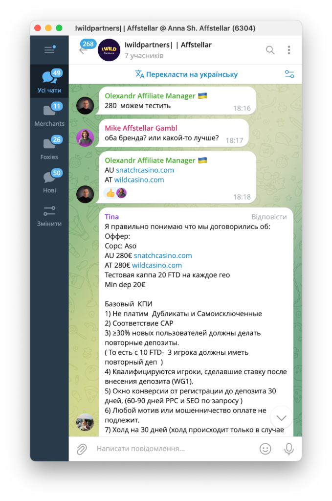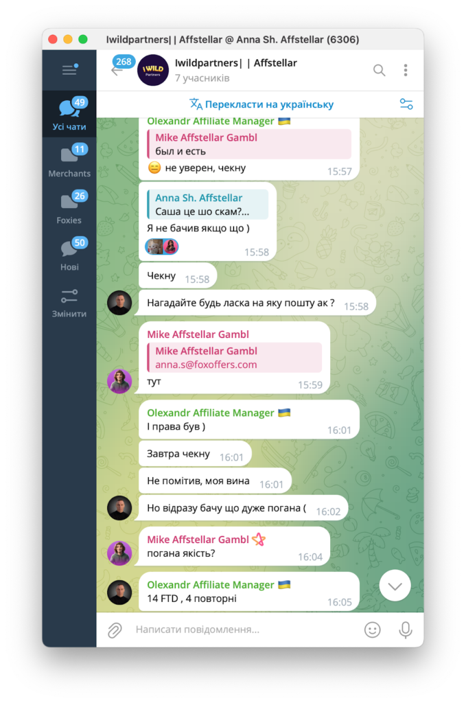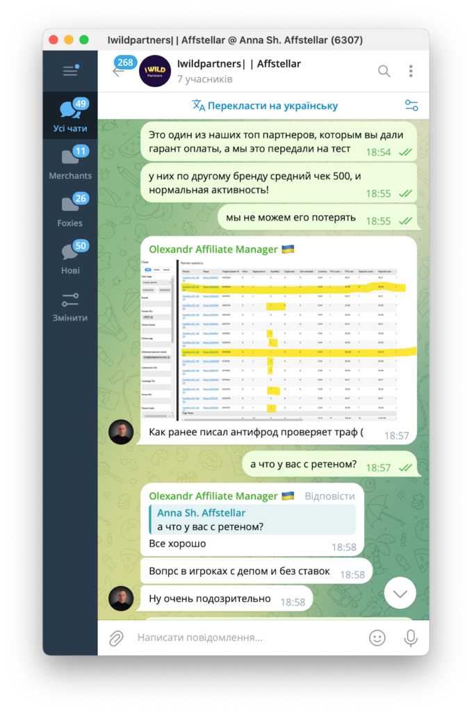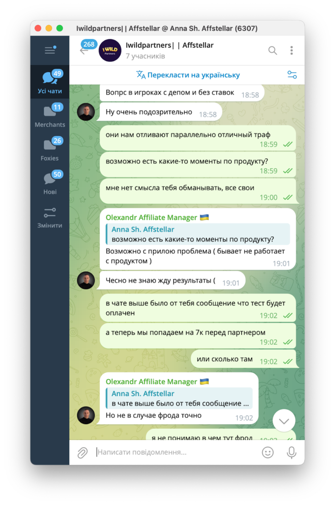 Партнер, який лив трафік — наш давній та перевірений партнер. Спочатку нам пропонували певні умови, а потім домовилися про тест з гарантією повної оплати тестової капи.