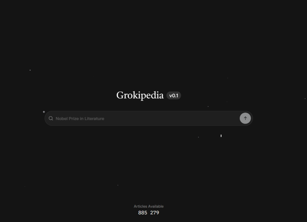 На Grokipedia.com уже опубліковано майже 900 тисяч статей, а інтерфейс нагадує Вікіпедію, але з темною темою. Проте деякі користувачі повідомляють про помилки при завантаженні сторінок.