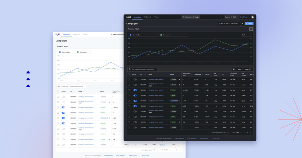 Глобальна рекламна платформа MGID запустила оновлений дешборд MGID Ads із вдосконаленим функціоналом для самостійного налаштування і запуску рекламних кампаній. Нова платформа надає користувачам потужний та інтуїтивно зрозумілий інтерфейс, який містить функції на основі ШІ та вдвічі прискорює налаштування кампаній.