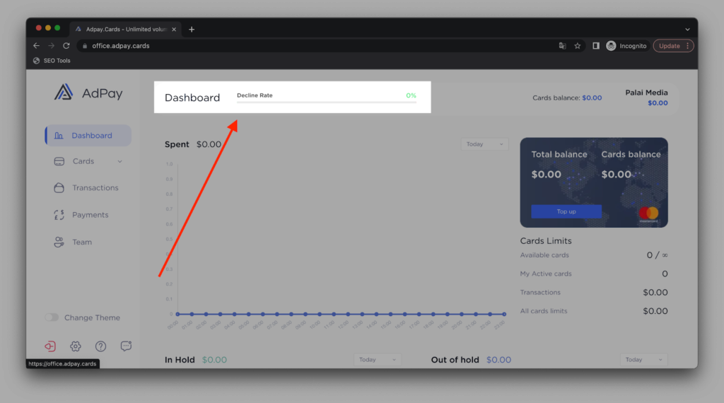 Одразу попереджаємо, що сервіс не працює з первобільщиками. На кожному акаунті є Decline Rate – показник, що показує кількість неуспішних спроб стягнення оплати рекламними сервісами через недостатній баланс.