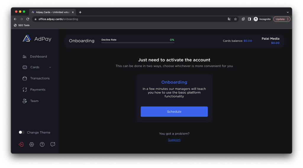 Віртуальні картки Adpay створені командою з багаторічним досвідом в медіабаїнгу, тож всі процеси продумані для максимально зручного, вигідного та ефективного використання платіжки соло медіабайерами та командами.