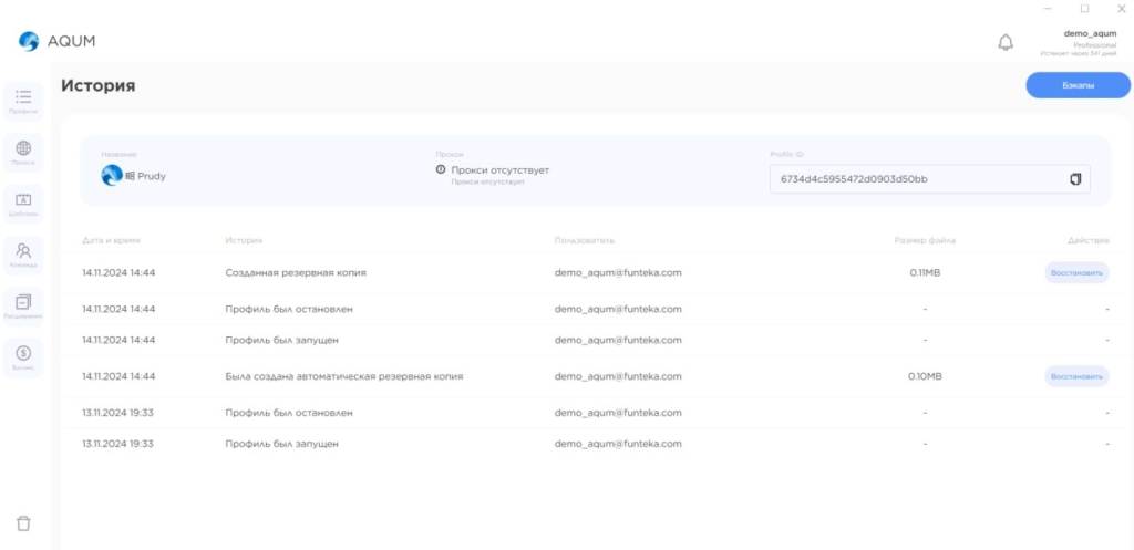 AQUM робить бекапі профілів, тому можна не хвилюватися про втрату даних. За необхідності можна відновити попередній набір профілів конкретної сесії і не витрачати час на ручні коригування.