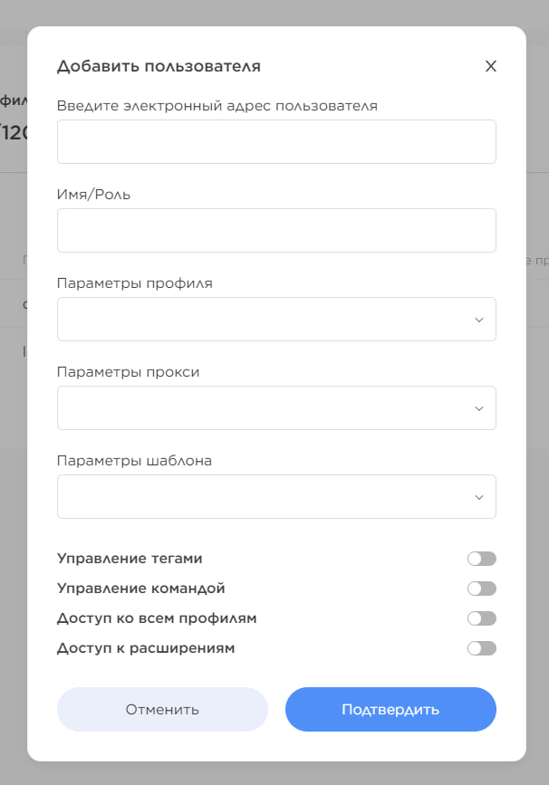 У вікні запрошення користувача можна гибко налаштувати права та за необхідності додати роль супер-адміна в команді.