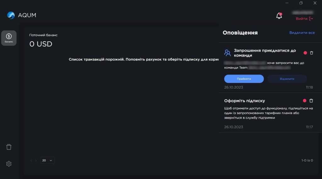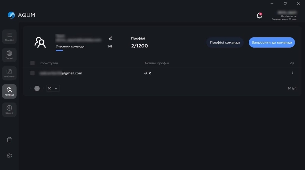 Для інвайтингу члена команди потрібно зареєструвати додатковий обліковий запис і відправити запрошення. Передати профіль з антіку можна як члену своєї команди, так і будь-якому іншому користувачу AQUM.