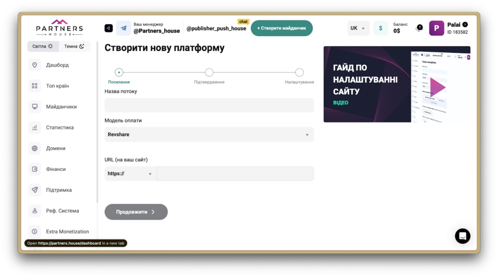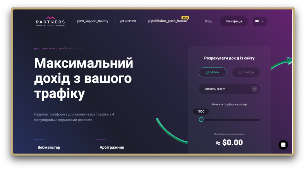 Partners.House: платформа для монетизації та домонетизації трафіку вебсайтів