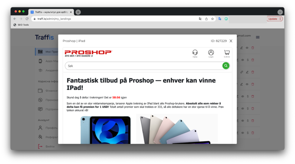 - наявність готових воронок – всередині ви знайдете готові преленди на вибір та мобільні застосунки, які вже протестовані та готові приймати трафік. А за бажання, можна завести свої преленди та застосунки в кілька кліків;